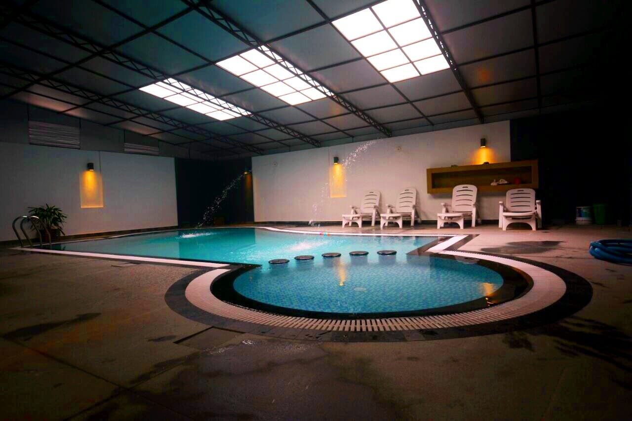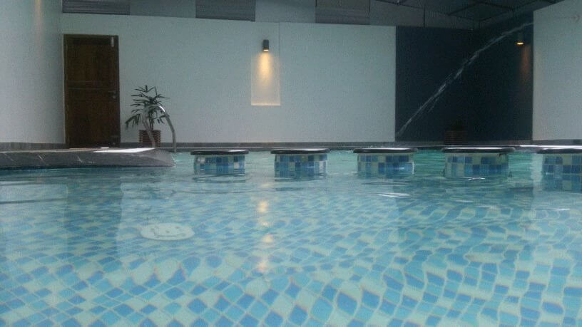 A pool with water feature, Indoor type at Calicut. Designed and built by SanWe Pools